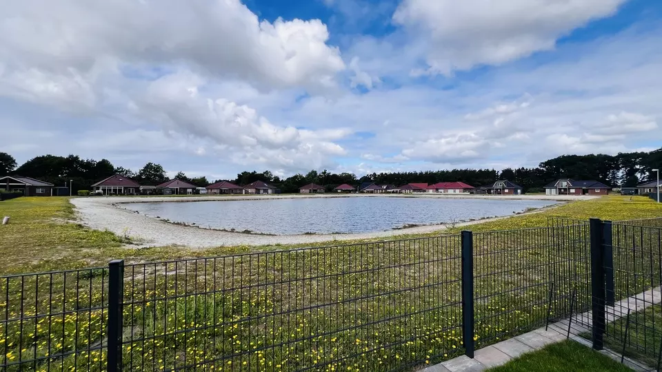 Die Unterkunft liegt ruhig und direkt am Badesee des Ferienhausgebietes.