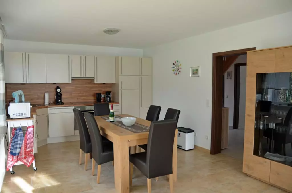 Das Erdgeschoss des Ferienhauses ist barrierefrei. Lediglich die Schlafräume im Obergeschoss sind über eine Treppe erreichbar.