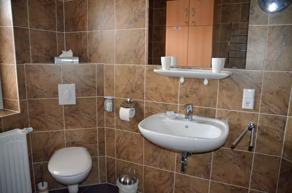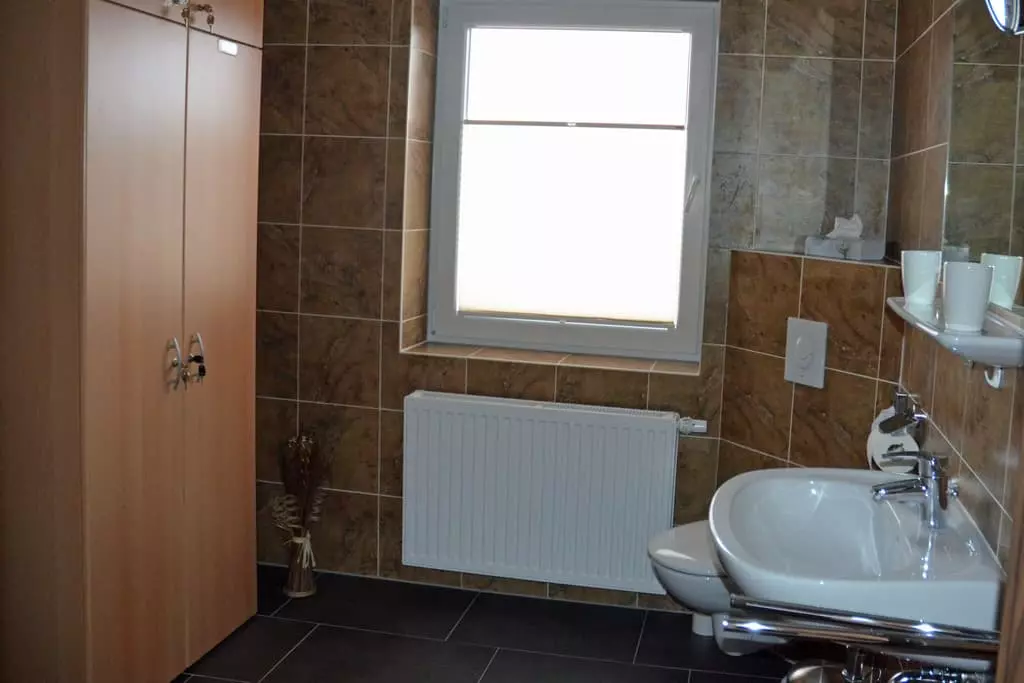 Im Erdgeschoss befinden sich zwei Badezimmer mit Dusche und ein zusätzliches Gäste-WC.